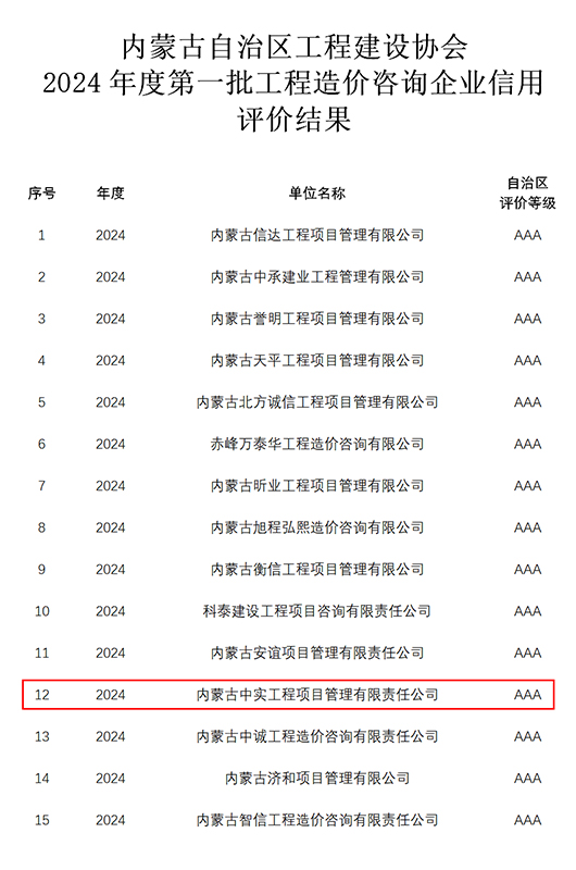 2024-07-3016820 次近期,我公司参加内蒙古自治区工程建设协会组织的“2024年度第一批工程造价咨询企业信用”申报,获得“信用AAA级证书”。我公司成立多年以来,遵循中国工程造价管理协会对造价咨询企…